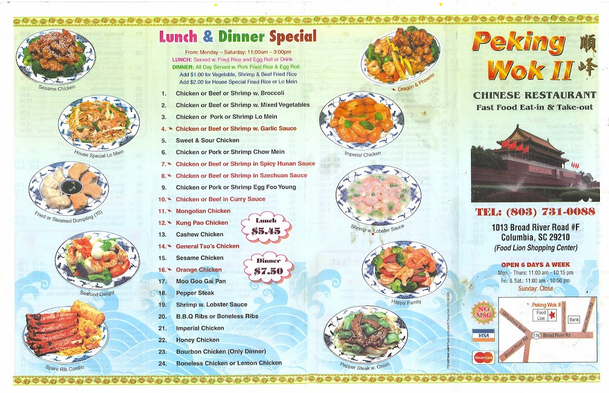 Welcome to Peking Wok II, a hidden gem located at 1013 Broad River Rd in Columbia, SC. This restaurant offers an extensive menu that embodies the flavors of American Chinese cuisine.